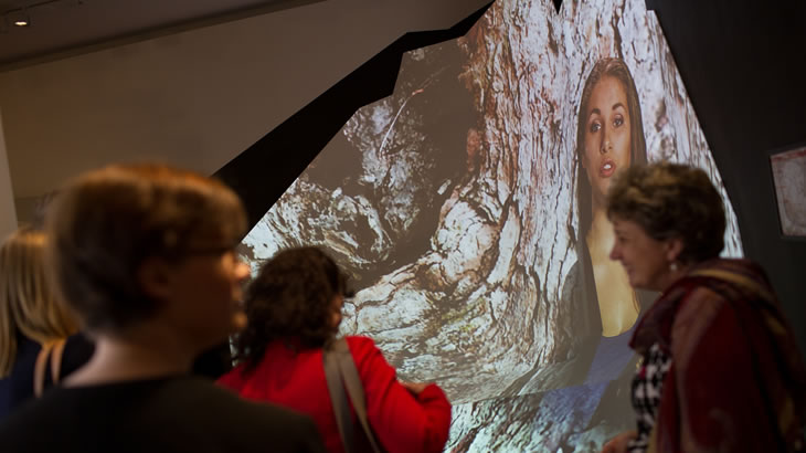 Country is the first section visitors encounter as they enter the exhibition. A stunning and powerful selection of interviews with members of the Aboriginal community are projected onto a five-metre, irregular-shaped wall. Hitachi’s CPWU9411 DLP projector and Hitachi’s USL901 ultra short throw lens were chosen to projection-map the video content in a small section of the gallery. The result is a compelling and unique experience within the exhibition.